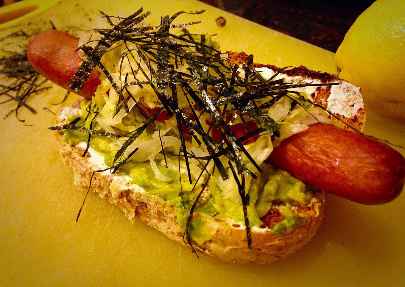 I love hot hogs, and I've been kinda bothered that San Francisco doesn't have a hot dog style. Seattle has a dog. Even L.A. Has a dog. SF needs a dog. This one isn't really San Francisco worthy though. I googled California dog and the recipe I found was pretty lame, so, I feel comfortable stealing the concept.