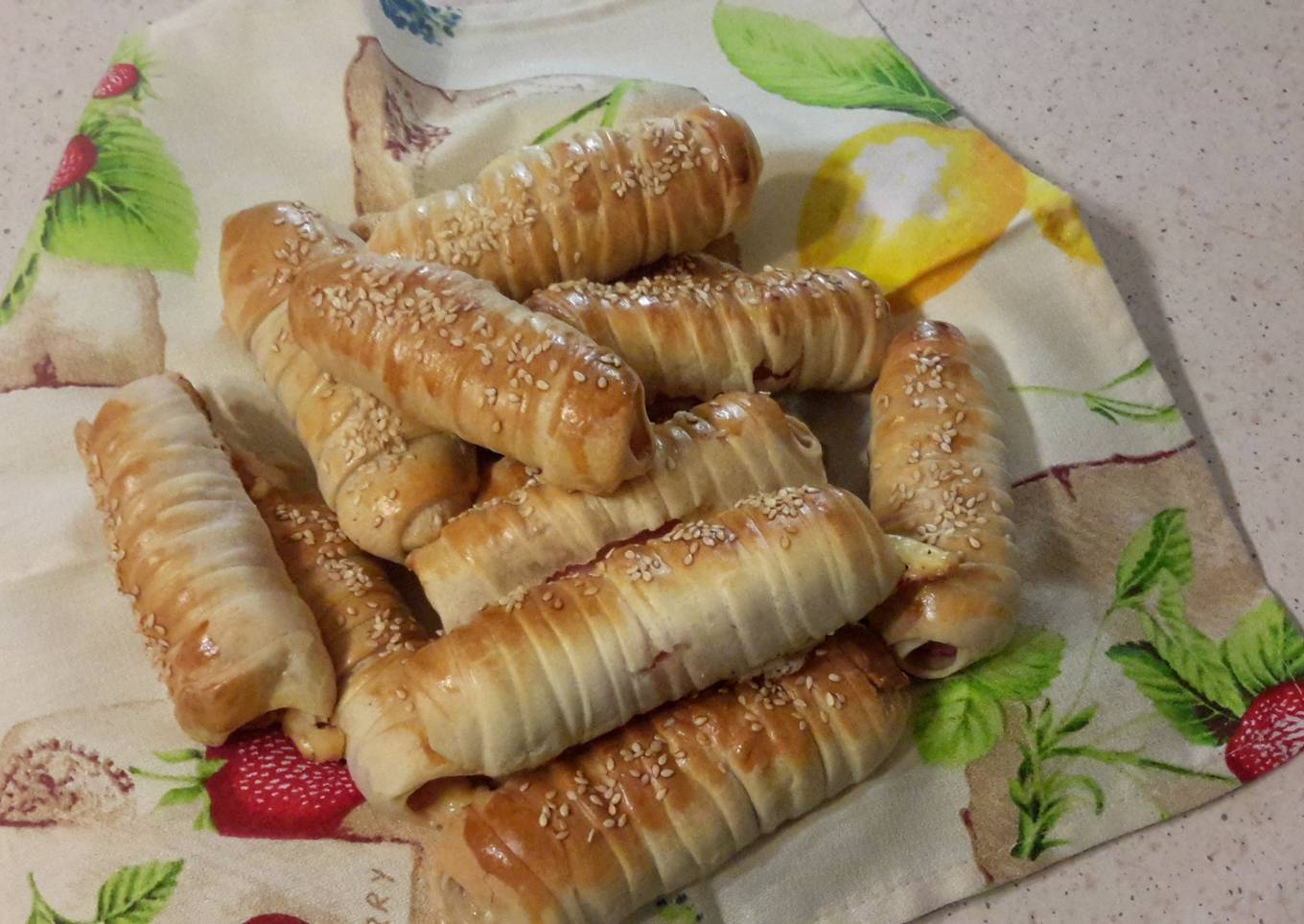 - Wrap the dough on the sausages.