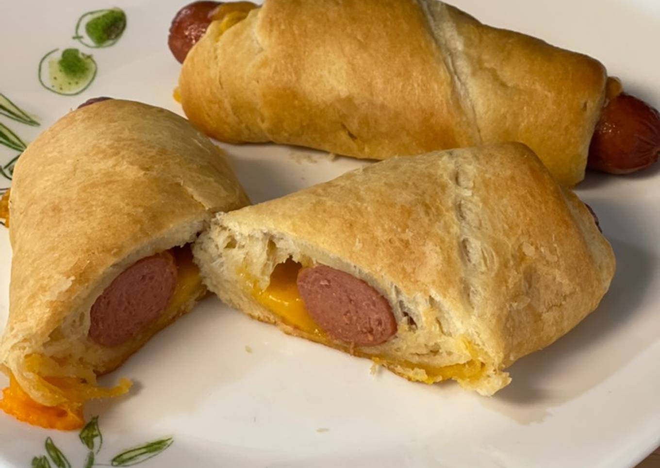 - Place a hotdog on each crescent roll.