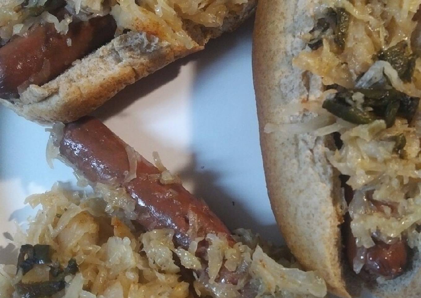 Instructions to make to make Sauerkraut, Hotdogs, and Peppers